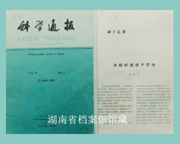 袁隆平关于杂交水稻的第一篇论文—“水稻的雄性不孕性”,刊登于《科学通报》1966年第4期。
